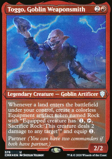 Toggo, Goblin Weaponsmith (Etched) [Commander Legends]Set: Commander Legends Type: Legendary Creature — Goblin Artificer Rarity: Uncommon ...