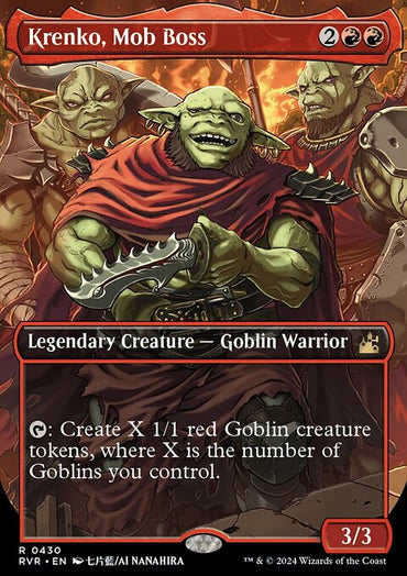 Krenko, Mob Boss (Anime Borderless) [Ravnica Remastered]Set: Ravnica Remastered Type: Legendary Creature — Goblin Warrior Rarity: Rare ...