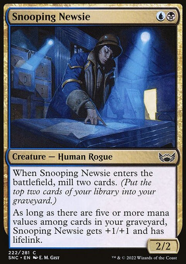 Snooping Newsie [Streets of New Capenna]Set: Streets of New Capenna Type: Creature — Human Rogue Rarity: Common Cost...