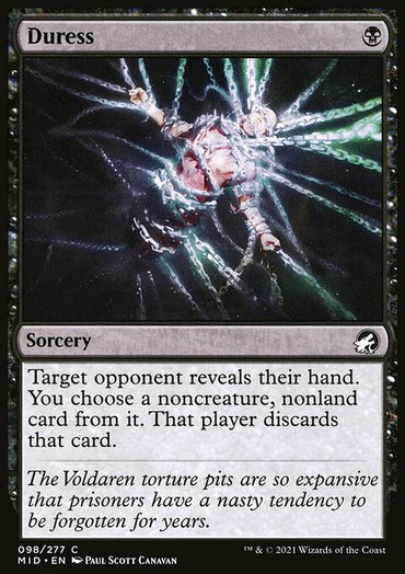 Duress [Innistrad: Midnight Hunt]Set: Innistrad: Midnight Hunt Type: Sorcery Rarity: Common Cost: {...