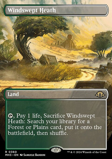 Windswept Heath (Borderless) [Modern Horizons 3]Set: Modern Horizons 3 Type: Land Rarity: Rare {T}, Pay 1 life, Sacri...