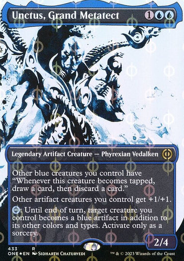 Unctus, Grand Metatect (Borderless Ichor Step-and-Compleat Foil) [Phyrexia: All Will Be One]Set: Phyrexia: All Will Be One Type: Legendary Artifact Creature — Phyrexian Vedalken Rarity: Rare ...