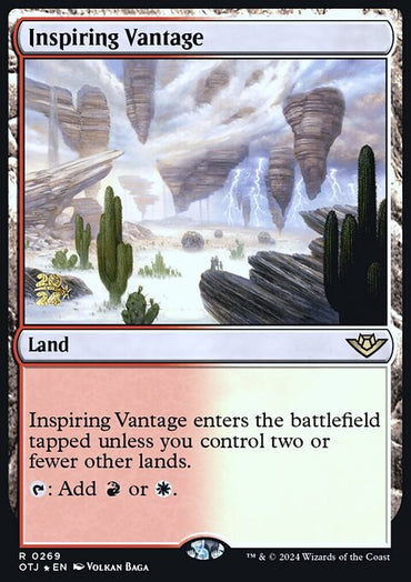 Inspiring Vantage (OTJ) [Outlaws of Thunder Junction Prerelease Promos]Set: Outlaws of Thunder Junction Prerelease Promos Type: Land Rarity: Rare ...