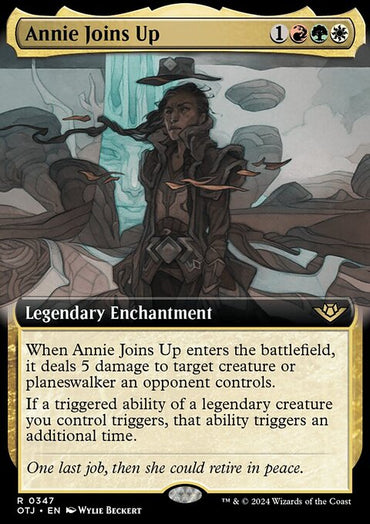 Annie Joins Up (Extended Art) [Outlaws of Thunder Junction]Set: Outlaws of Thunder Junction Type: Legendary Enchantment Rarity: Rare Co...