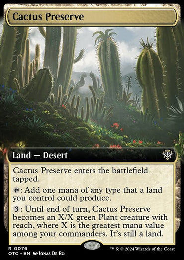 Cactus Preserve (Extended Art) [Outlaws of Thunder Junction Commander]Set: Outlaws of Thunder Junction Commander Type: Land — Desert Rarity: Rare ...
