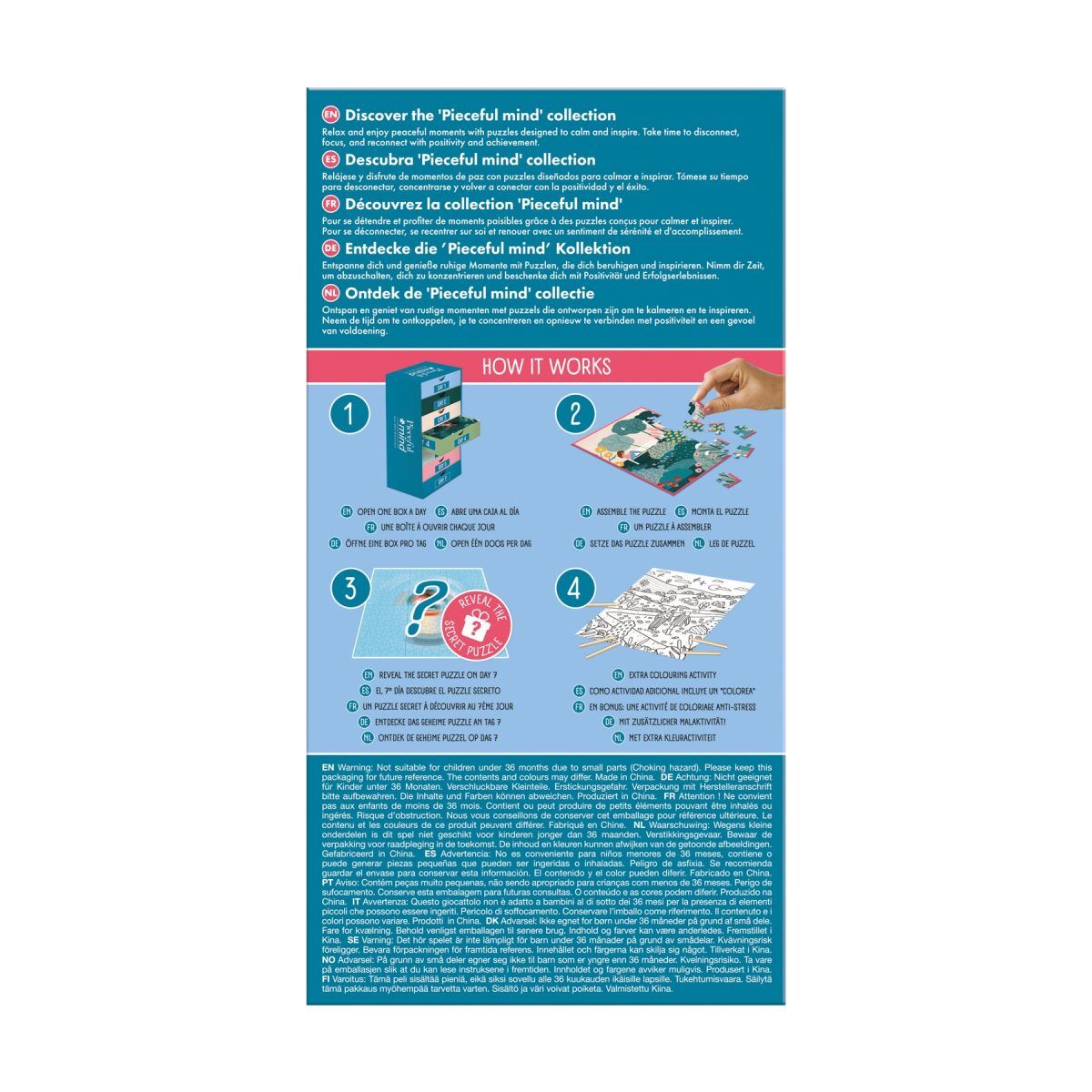 On the final day, enjoy a surprise puzzle reveal, a mindful exercise, and a relaxing colouring activity.
