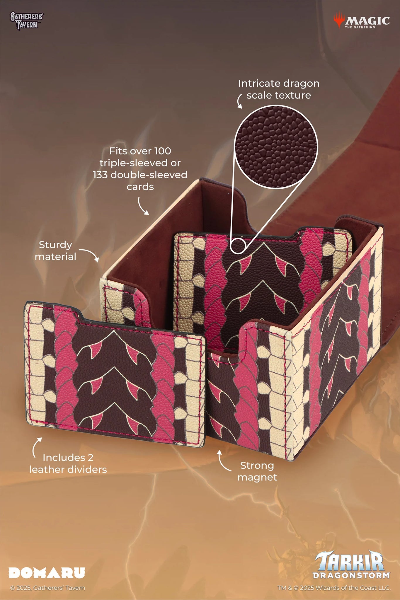 Choose your spirit dragon with these Tarkir: Dragonstorm DOMARU boxes, featuring textured scale patterns inspired by the five dragons. Your cards and other items will be kept safe under their protection.