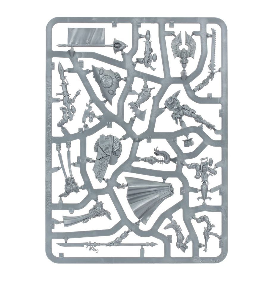 This kit builds one Autarch, who can be customised with a huge variety of choices – allowing you to build your very own Aeldari leader according to the Aspect Warrior Paths they have mastered. Choose between a star glaive and Scorpion chainsword for close combat, and blast away foes with a shuriken pistol, death spinner, Reaper launcher, or Dragon fusion gun. Other customisation options include alternate heads, a choice of torsos, a backpack-mounted banner, and Howling Banshee and Warp Spider cosmetic options. This miniature is also fully compatible with components from the Autarch Wayleaper kit, offering even more potential combinations.