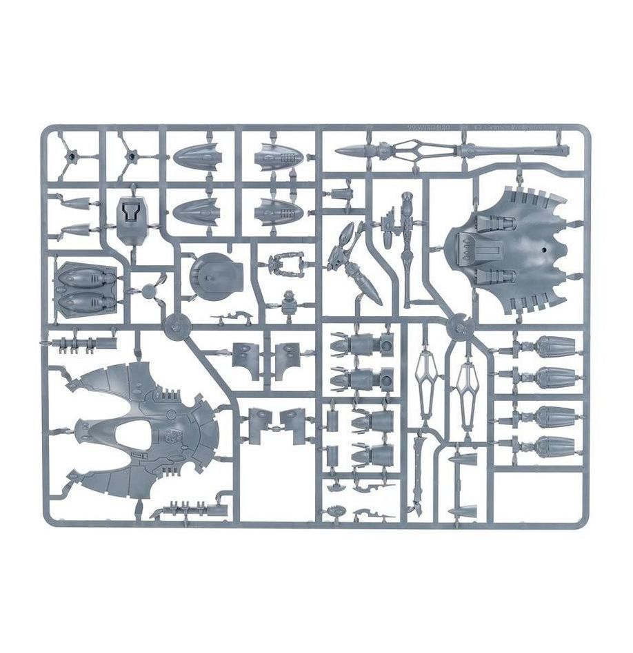 This kit comprises 64 plastic components, 1x Citadel Flying Base, and 1x Aeldari Vehicle Transfer sheet containing 378 high-quality waterslide transfers to customise your miniature.