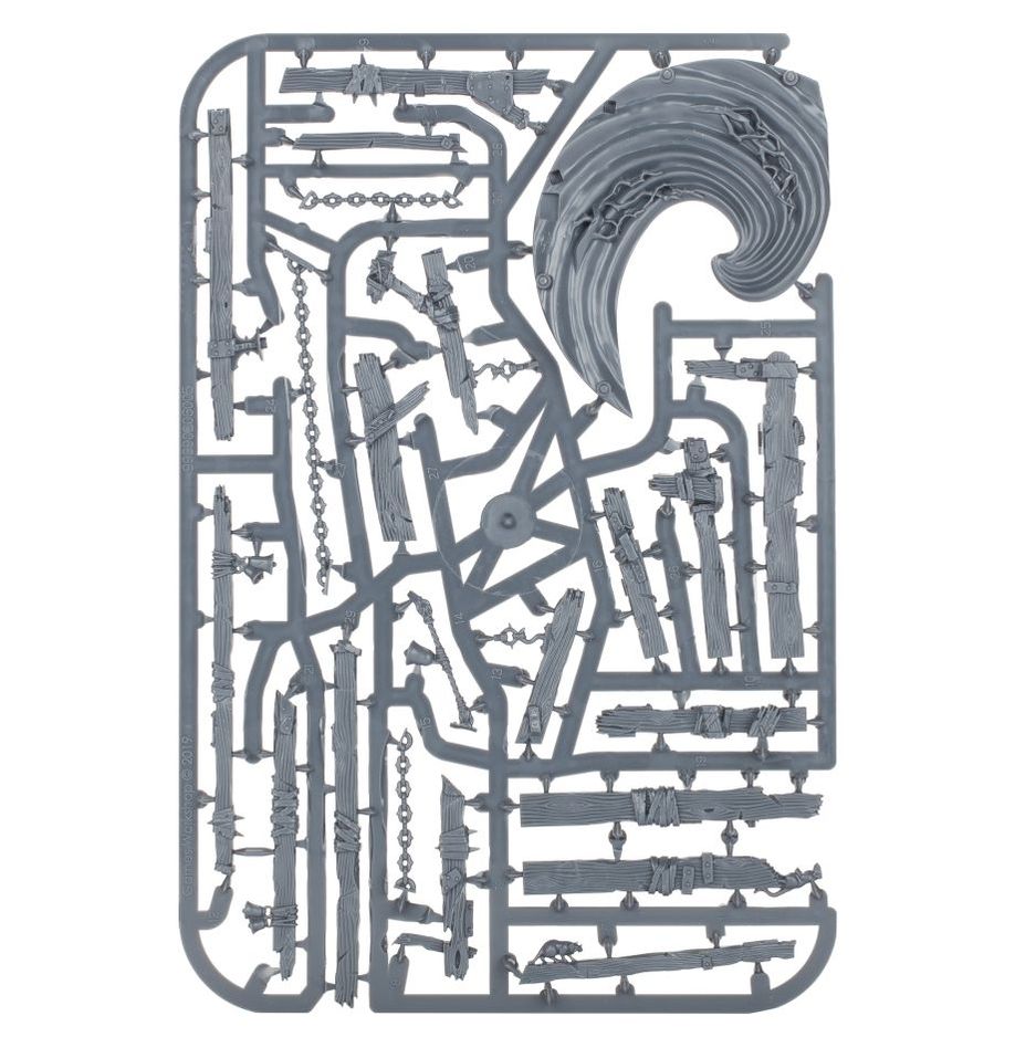 This multipart plastic kit builds a set of three Gnawholes, faction terrain for your Skaven armies in games of Warhammer Age of Sigmar. These bizarre magical rifts offer several benefits to your army, from damaging nearby enemy units, to allowing you to deploy reinforcements straight into the heat of battle. They are also a fantastic addition to your collection, replete with verminous details, bells, and braziers that fit right into the Skaven aesthetic.