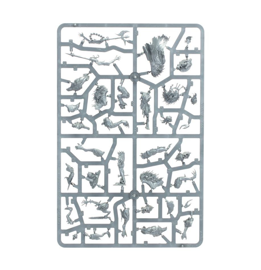 This multipart plastic kit builds a full warband of Royal Beastflayers, for use in games of Warcry. Led by an abhorrant known as a Royal Flaymaster, this band of deluded and degenerate questants roam the Mortal Realms in search of monsters to slay. The smaller, lighter Ghoul Trackers flush out their quarry, while skull-helmed Gore-squires pounce on the weakened prey. Beastflayer Barons and Offal Hounds add support and speed, allowing the warband to bring down even the mightiest prey. These miniatures can also be used as part of a Flesh-eater Courts army in games of Warhammer Age of Sigmar, using free rules available to Download on the Warhammer Community Website.